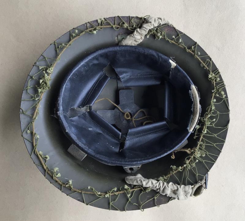 A very good clean example of the helmet designated "Helmet, Steel, MkII". Close to 2 million were produced by Commonwealth Steel. It was made with a raw edge unlike most other copies. The liner was made by Dunlop (Aust) Ltd.