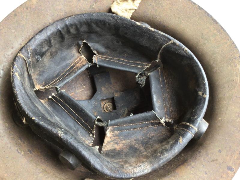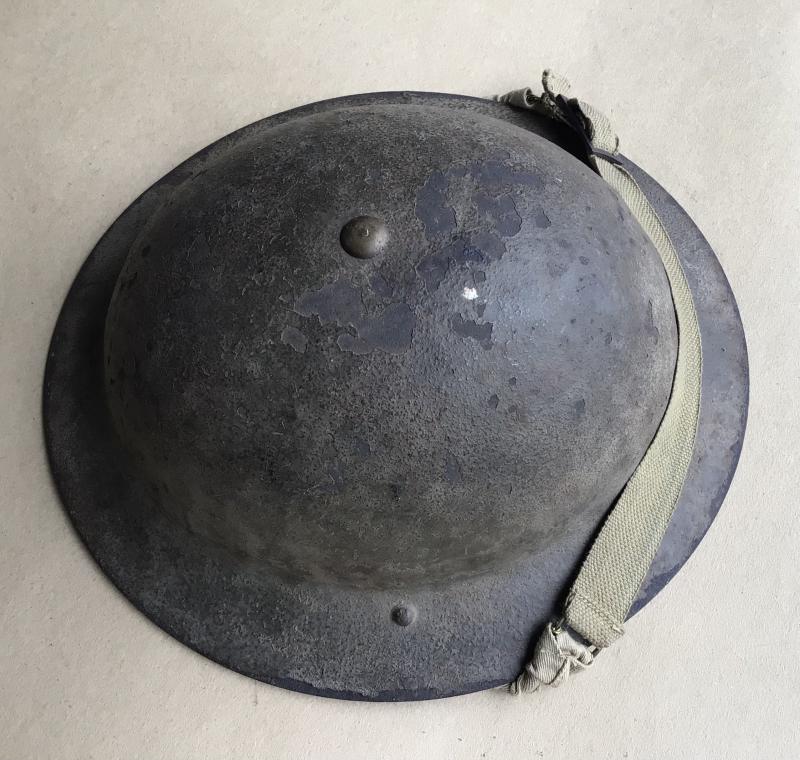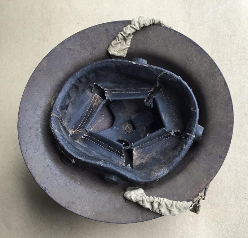A good servcie used example of the helmet designated "Helmet, Steel, MkII". Close to 2 million were produced by Commonwealth Steel. It was made with a raw edge unlike most other copies. The liner was made by Dunlop (Aust) Ltd.
