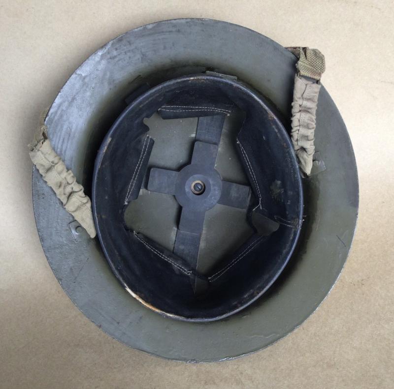 A very good clean example of the helmet designated "Helmet, Steel, MkII". Close to 2 million were produced by Commonwealth Steel. It was made with a raw edge unlike most other copies. The liner was made by Dunlop (Aust) Ltd.