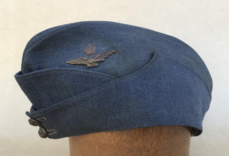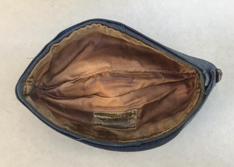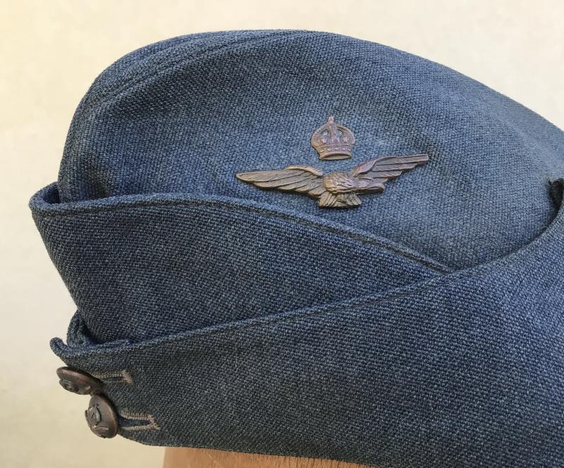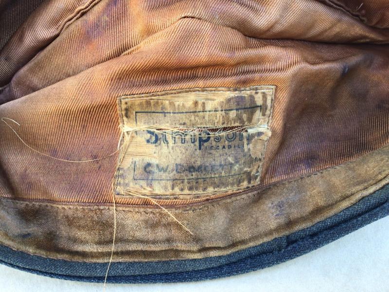 RAF blue wool with brass RAF front buttons and officers cap eagle these both with heavy but matching tone. Has full silk lining with Piccadilly makers label and owners name. The lining heavily soiled through ware.