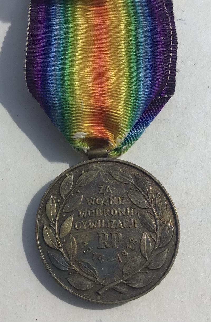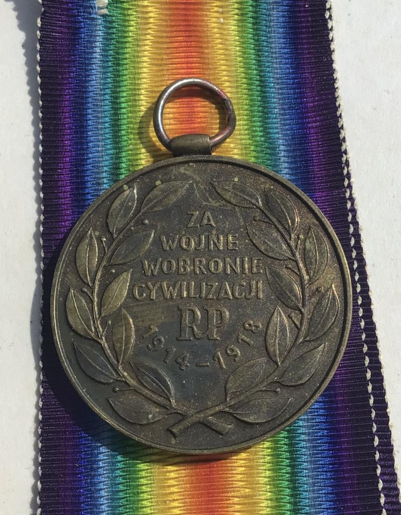 Unofficial medal as there was no issue of the Victory medal to Poland. Dark and toned and good compliment gap filler to the Victory medal collection.
