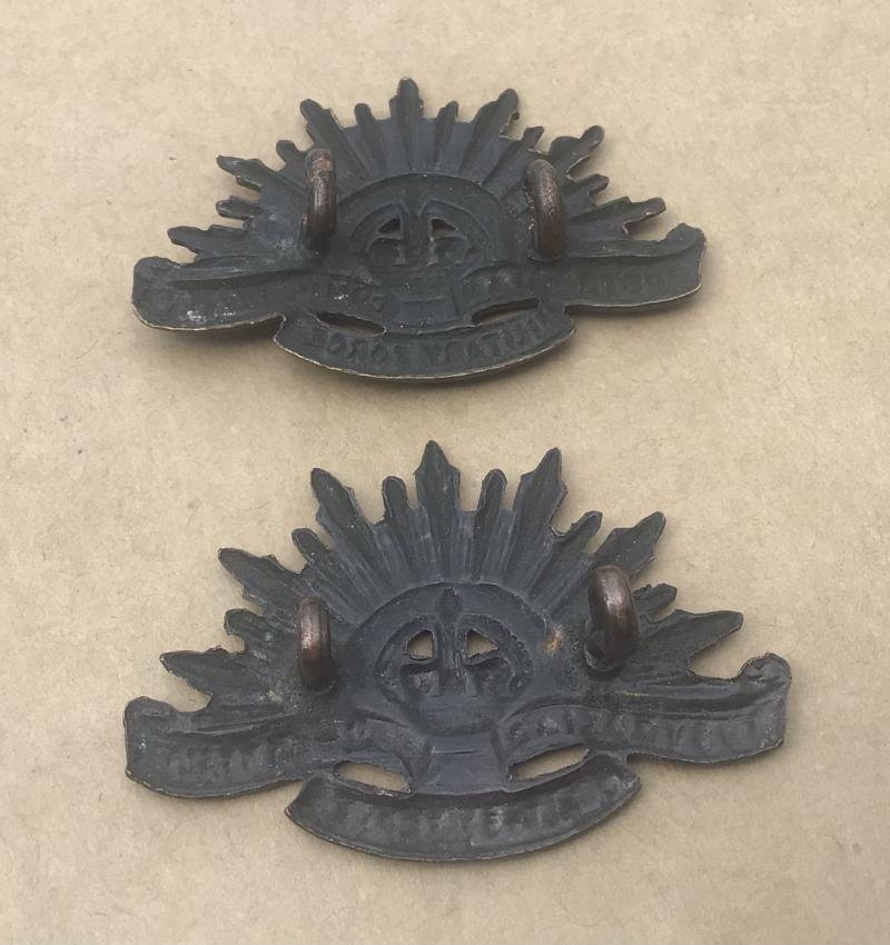 Australian WW1 Matcging Pair of Rising Sun Collar Badges