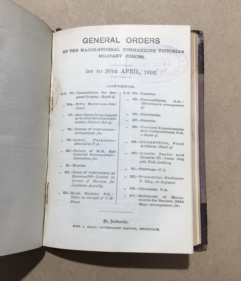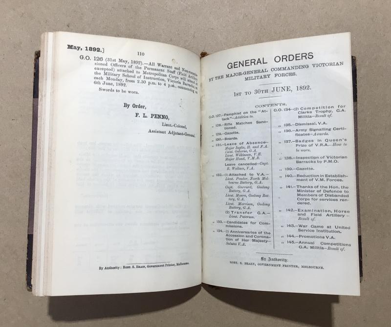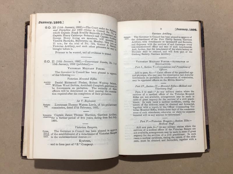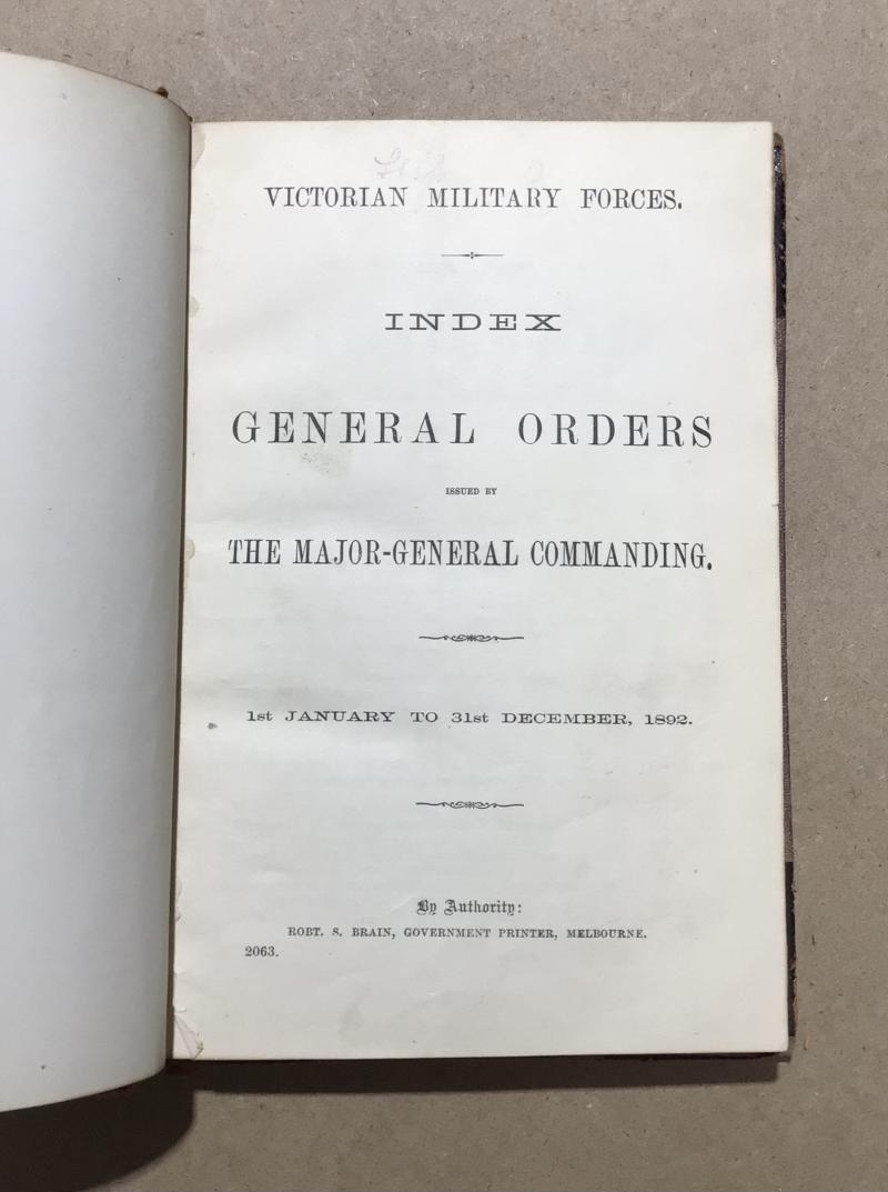 Australia Pre-Federation General Orders by the commandant, Victorian military forces, 1892