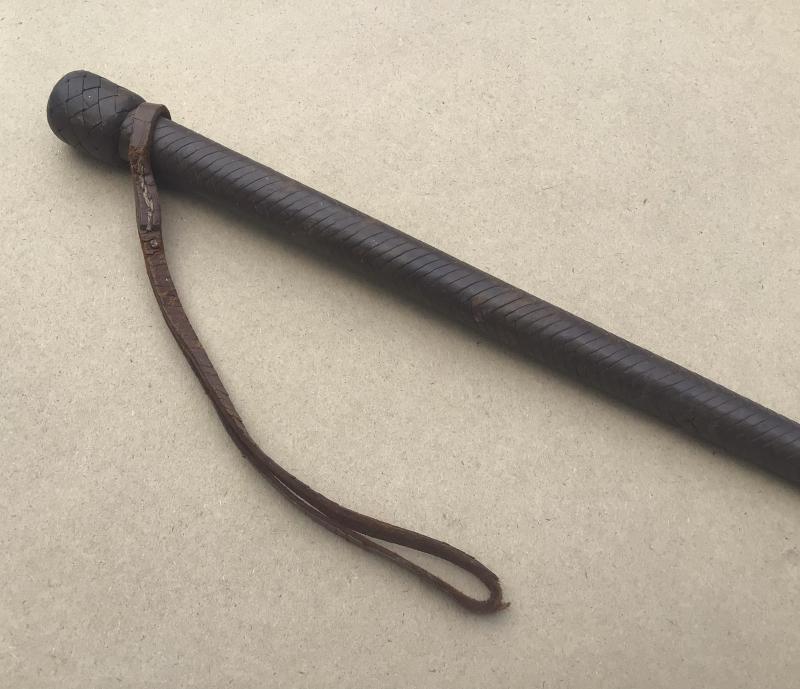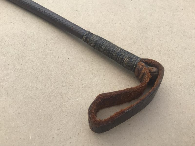 A supurb example with brown leather platted design over cane. Still with its original whip end and wrist loop. Approximately 650mm long and is in VGC.