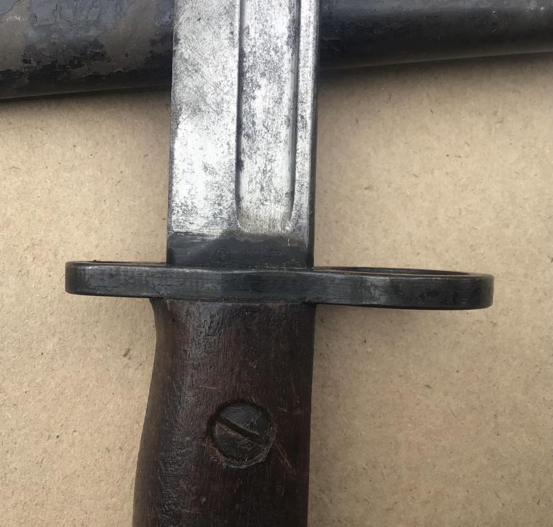 A overall good example with original wooden grips and working locking stud. Maker marked Poole and dated 1947.