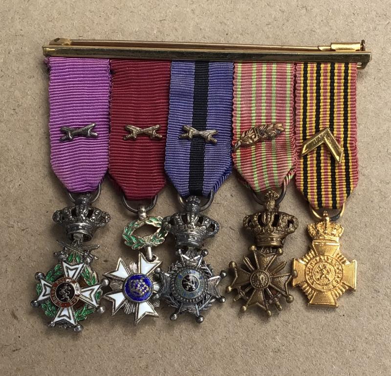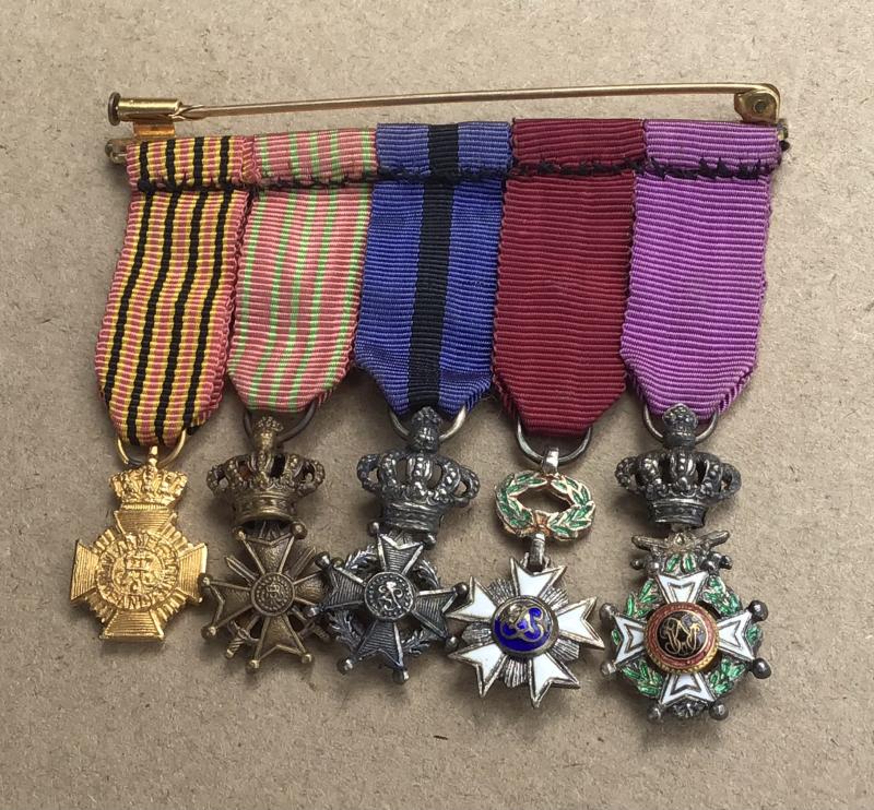 A delightful miniature group including the Order of Leopold I, Order of the Crown, Order of Leopold II, Criox de Guerre, Civil Service Order.