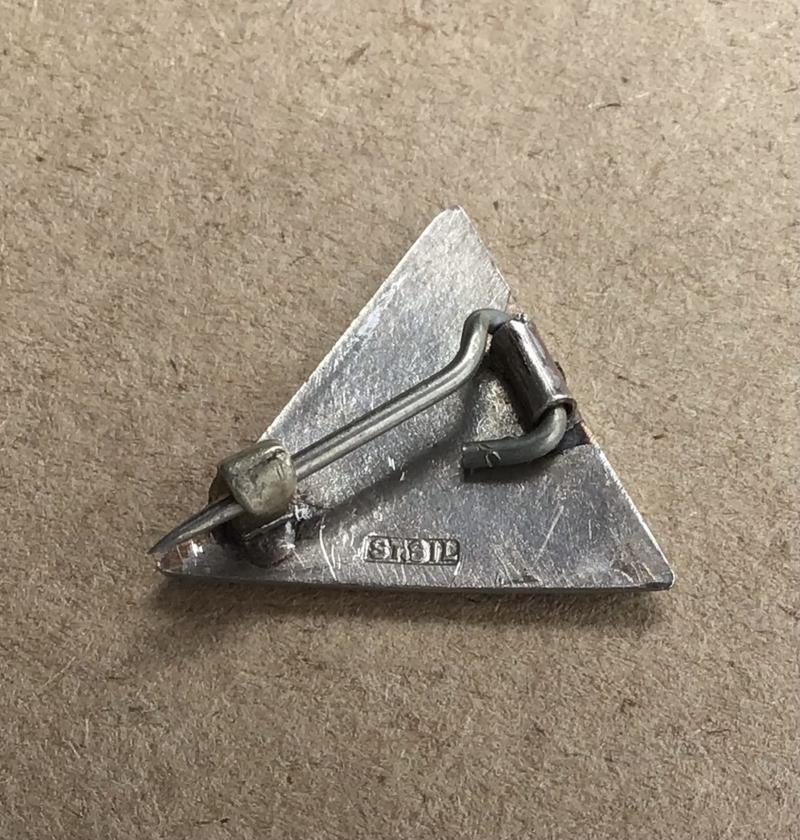 RAA 1st Corps. Sterling silver and enamels. Brooch pin reverse.