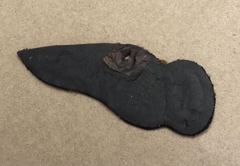 1918 Pattern nicely woven on flat black wool backing. Early type example with the elongated “0” rather than the later “O”.