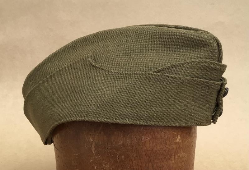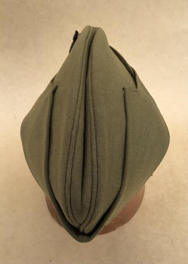 A choice example in khaki wool with an officers bronze GVIR Royal Engineers hat badge. The turn up sides secured by two general service buttons. The interior lined with silk and velvet comforter. Named on the inside tailor label .