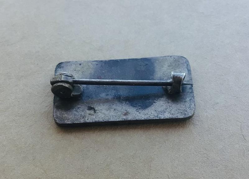 Enamels on white washed brass with brooch pin reverse. 25mm