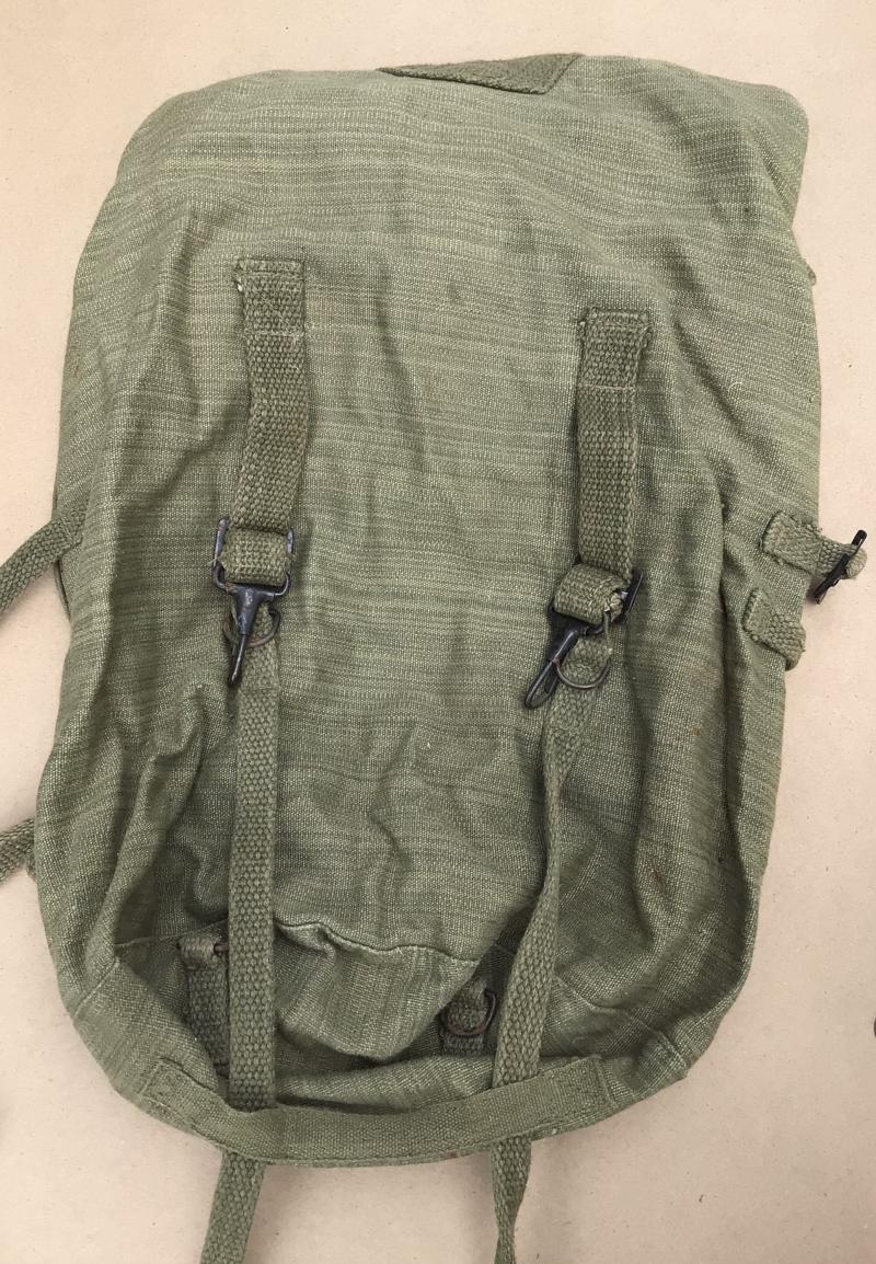 c.1944 -1945. Has all straps and buckles. Maker marked on the underside of the flap but not dated. "Has AFP" printed on the outside front flap where the usual "US" marking is found. Good overall condition.