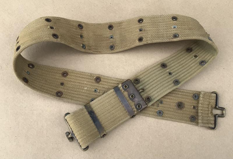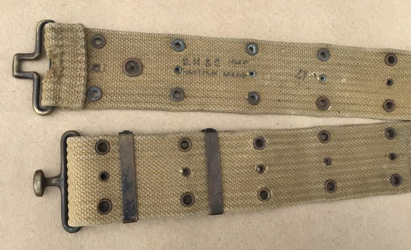 Light khaki web with brass fittings. The inside fealty stamped " British Made"