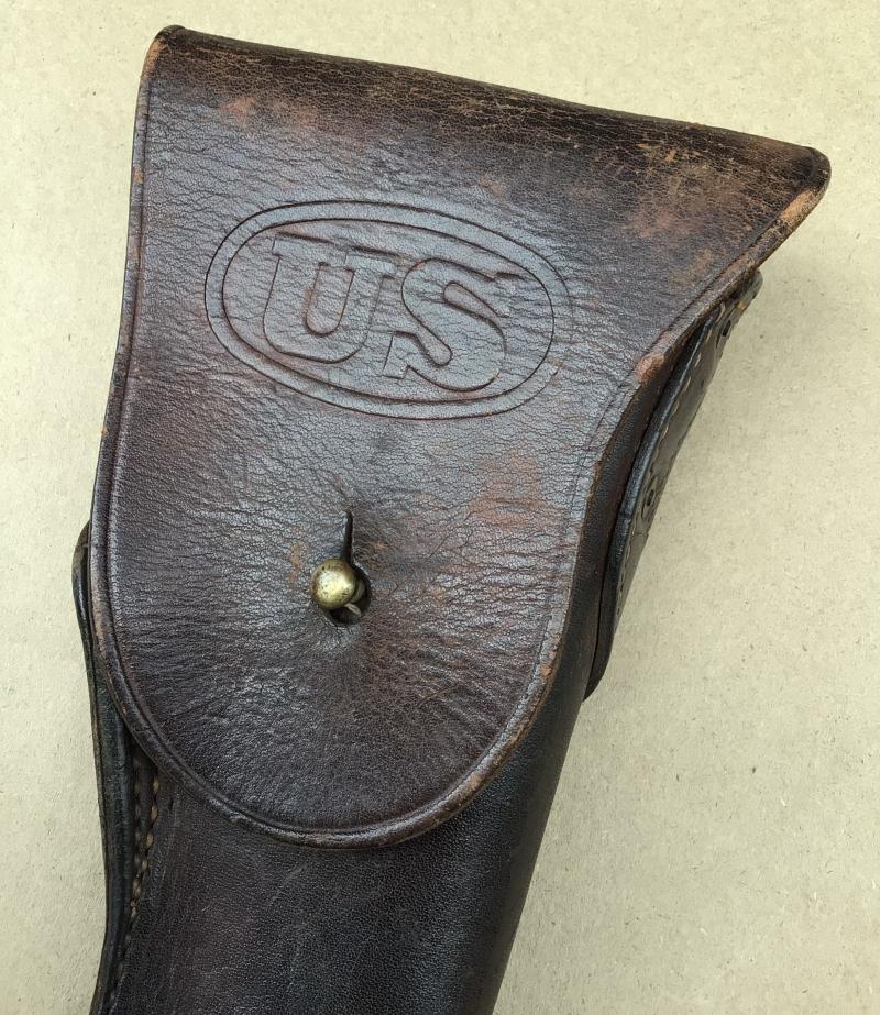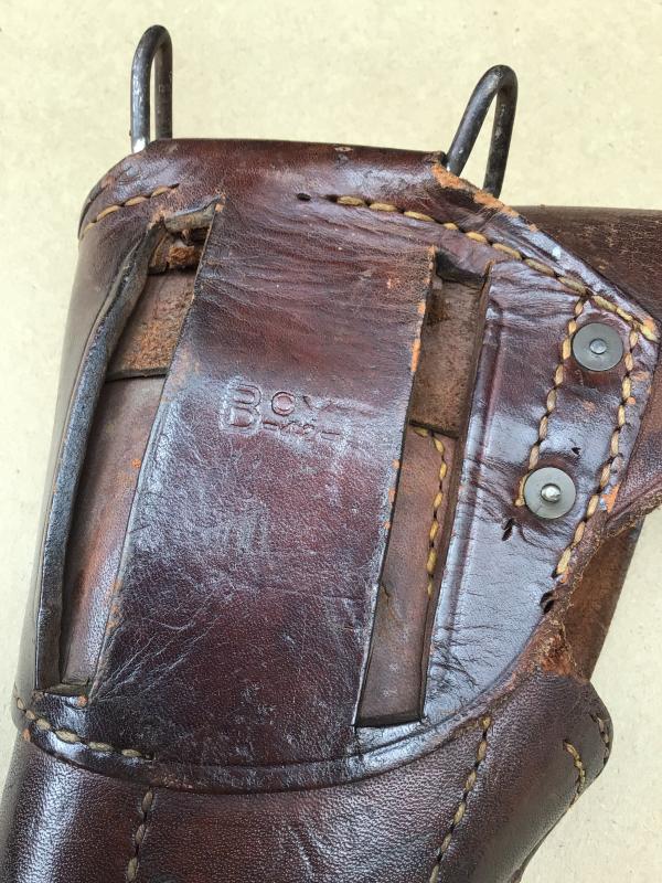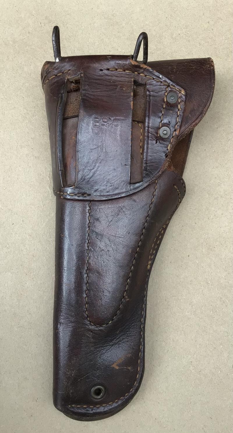 Excellent example in dark chocolate brown leather. The flap stamped "US". the reverse maker marked " Boyt" and dated 1942.
