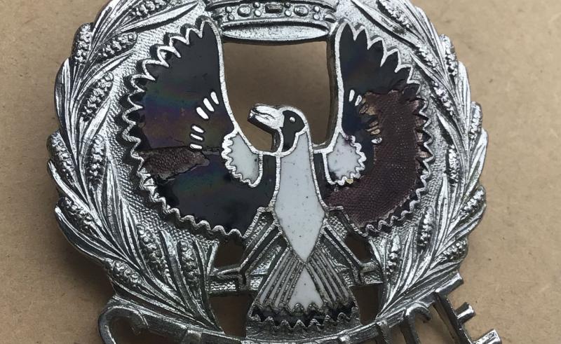 c.1950-1964. 2x lug reverse. Enamel on nickel. Has some major chips to approx 45% of the enamel on the Piping Stike wings.