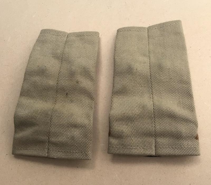 Matching pair. Oxidized rank insignia on khaki drill slides.