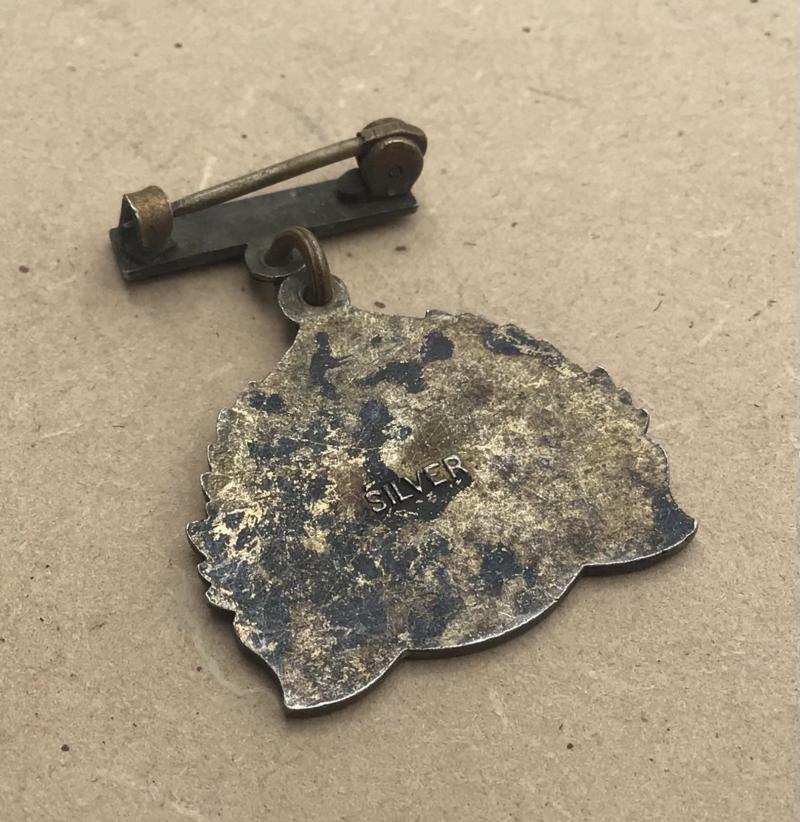 Pendant supporting a brooch fob “Australian Red Cross Day” (1918). Sterling silver and enamels. Hallmark reverse. approx 30mm (Pendant and fob)
