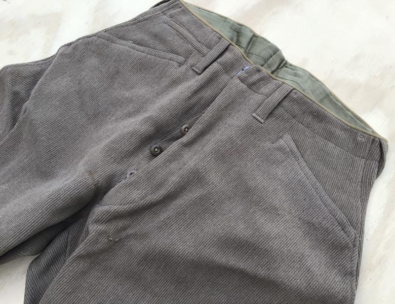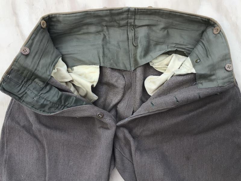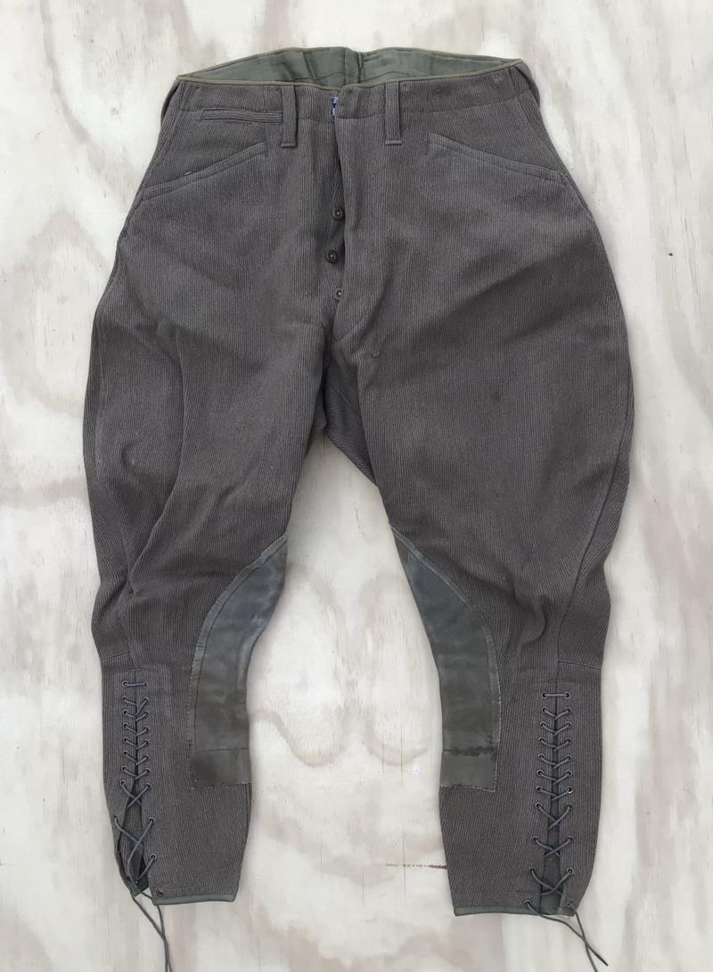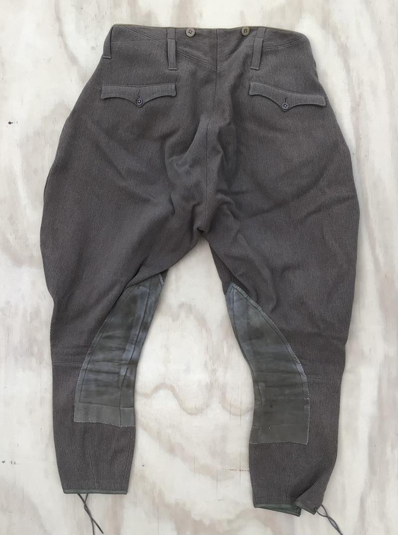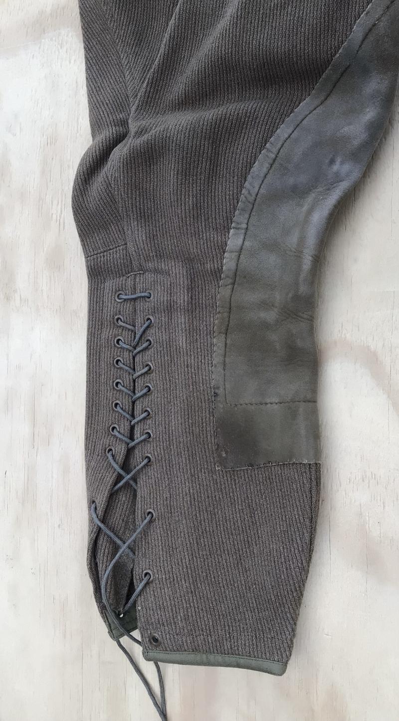 A good near unworn pair of officers Khaki wool whipcord Jodhpurs. Button fly. Leather reinforced thigh inners. Khaki cotton lining. No makers marking or date.