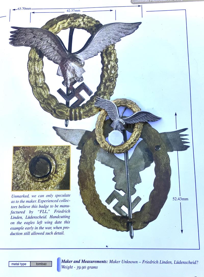 This is a nice original early textbook Luftwaffe Combined Pilot-Observer Badge (Gemeinsames Flugzeugführer- u. Beobachterabzeichen).