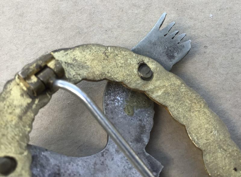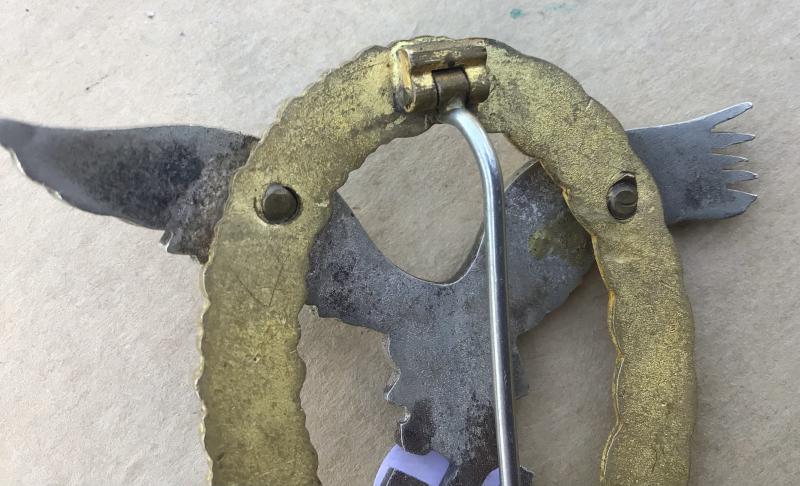 The badge still retains almost all of its original silver and fire gilt finish and shows very nice & pronounced detail overall, the badge is showing a nice slightly darkened age-patine and is showing polished highlights. Hand cut wing feathers. A functional pin & catch to the reverse.