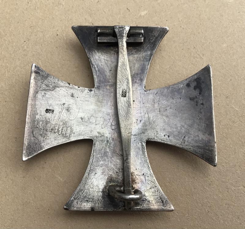 Original three piece construction. Nice convex example. Marked on both he pin and the back plate "800".