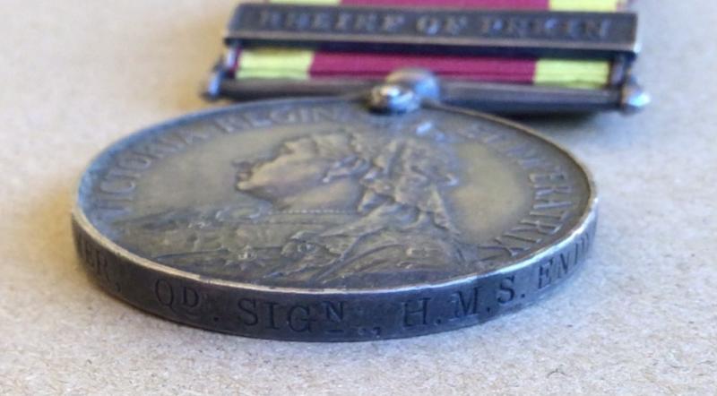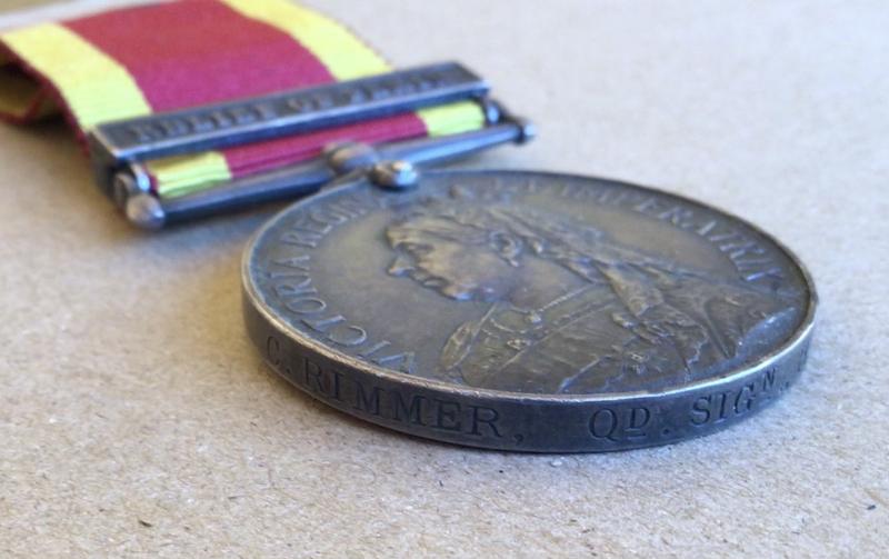 Clasp “ Relief of Pekin”. Impressed “ C. Rimmer Qd SIGn HMS EDYMION”.