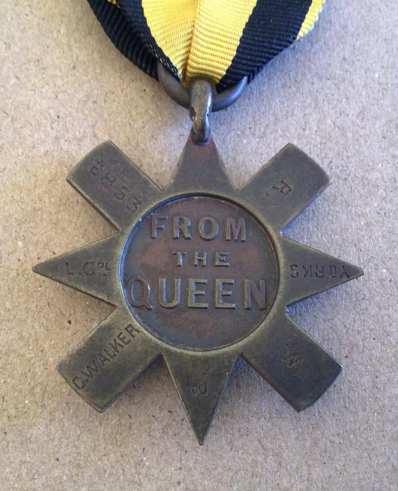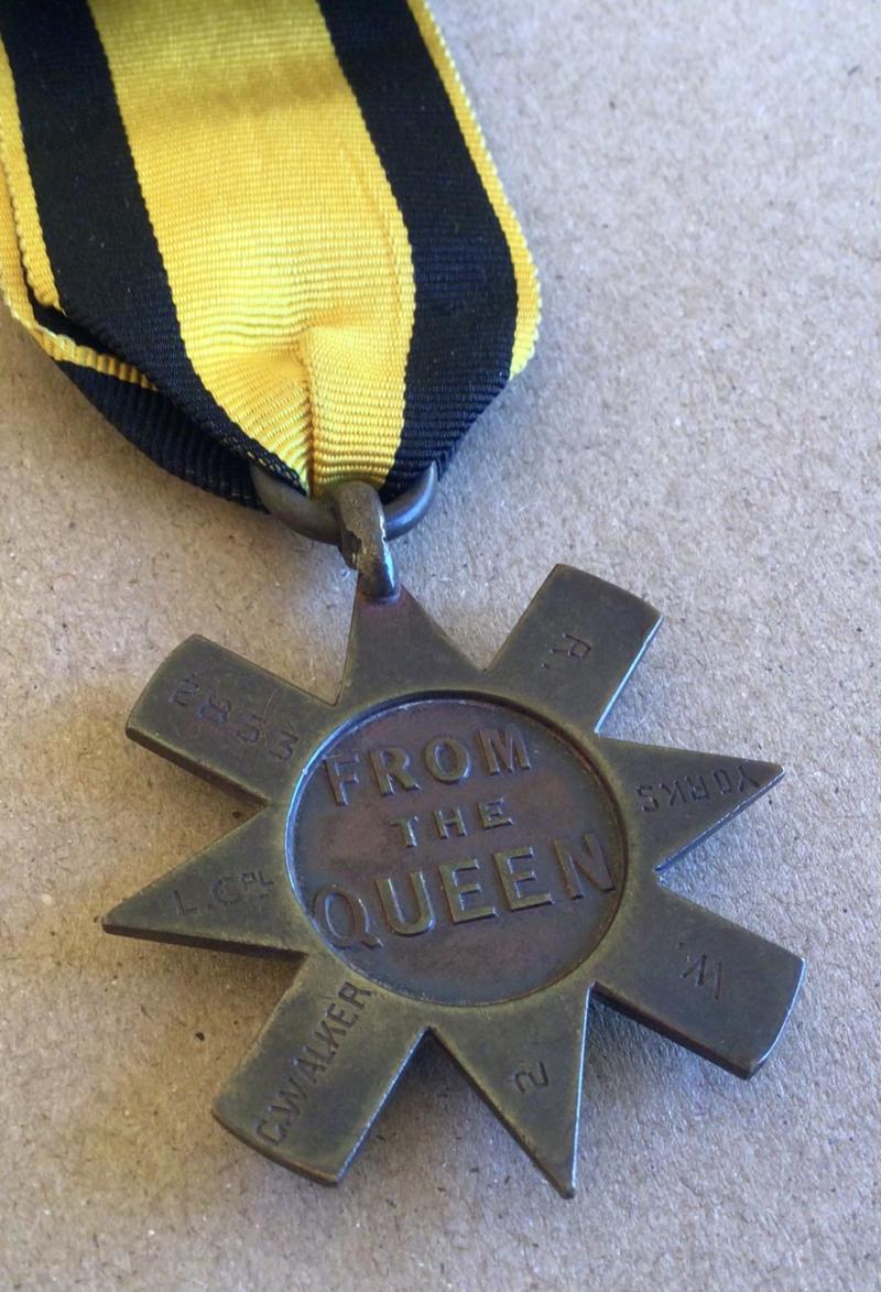 Engraved on the arms of the reverse “2853 L.CPL G WALKER 2 W YORKS R”. Between 1895 and 1896 the 2nd Battalion served in the Gold Coast and took part in the Fourth Ashanti Wa