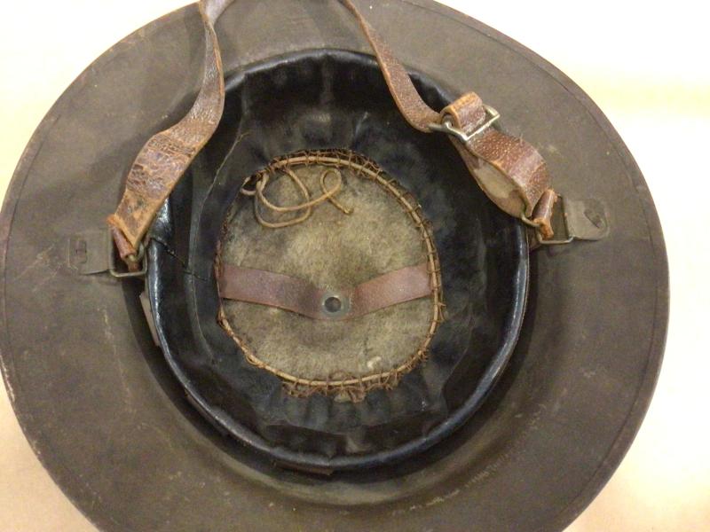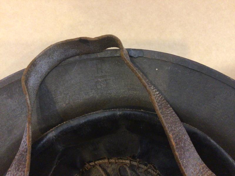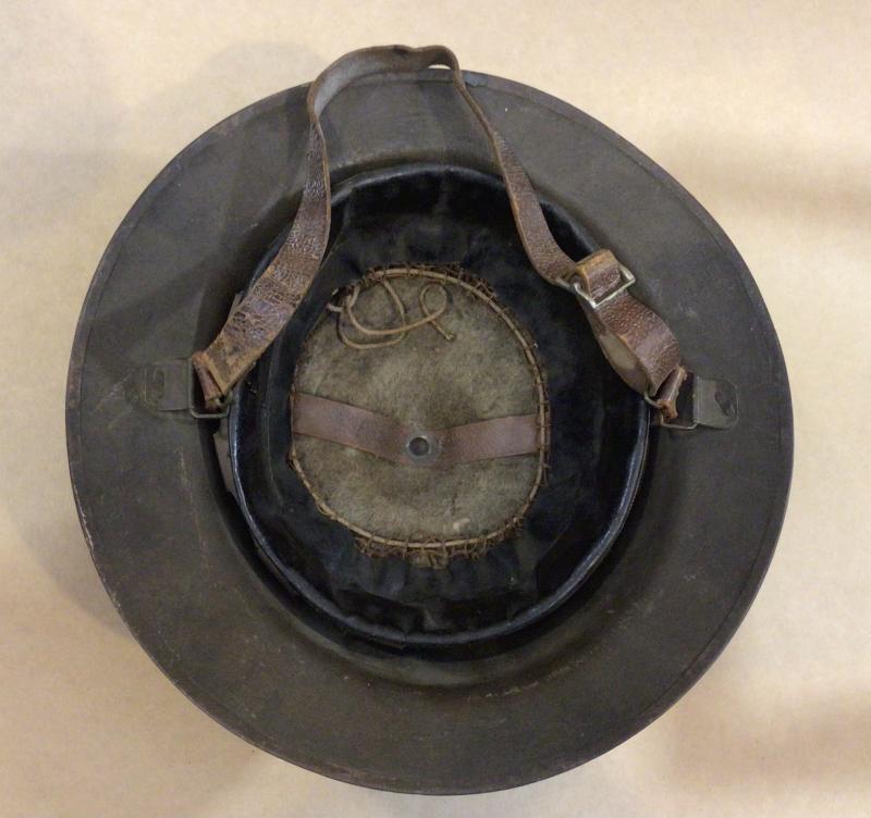 This example is the more common pattern which is identified by the rim and the rubber donut that was mounted underneath the felt crown, these modifications were implemented from around June 1917 together with a slightly improved liner material or artificial leather for the headband.