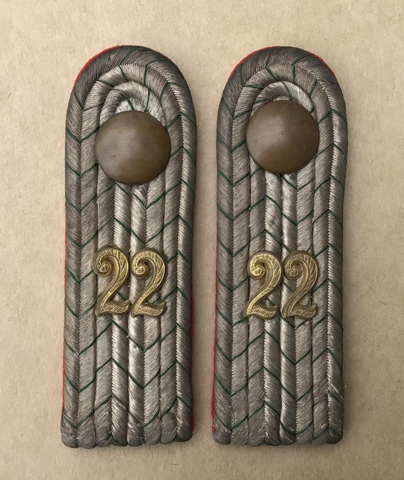 WW1 Prussian 22nd Infantry Regt Officers Shoulder Boards