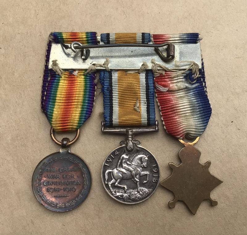 1914/15 Star, British War Medal and Victory Medal. A nice period original set of miniatures. Swing mounted as worn.