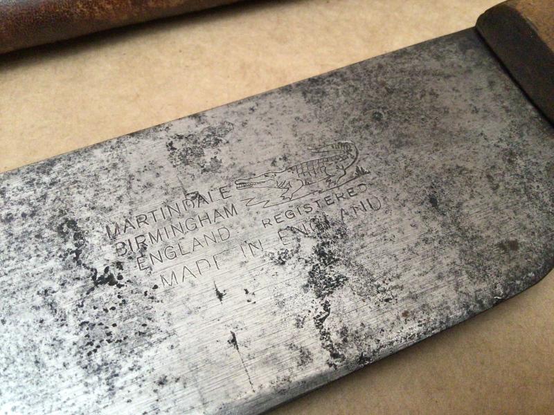 Pressed fibre grips in VGC. Overall good blade but some age tone. "Crocodile " Registered makers marks on the blade.