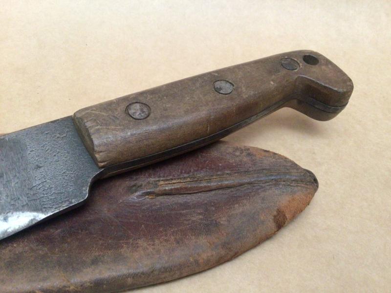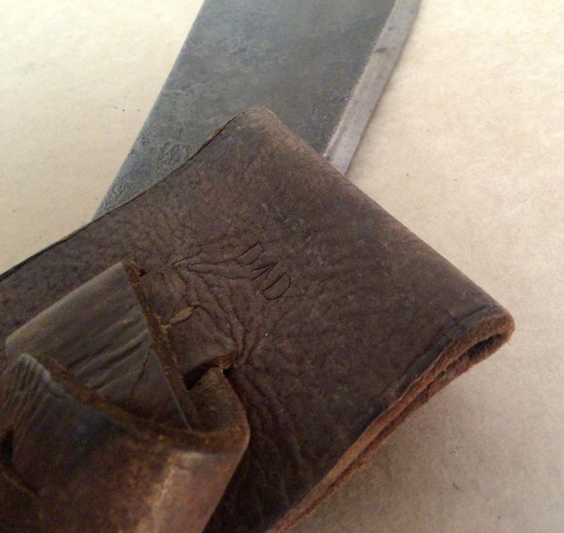 The brown leather sheath in good supple condition, also marked "Darrow D" and fits to the machete very well.