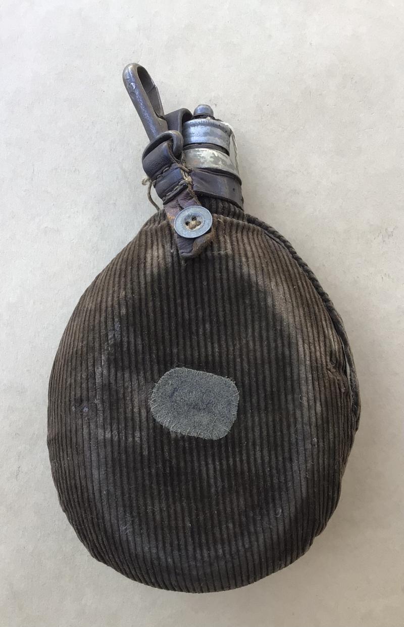 Brown corduroy cover with field grey patches with owners name. Complete with cork stopper.