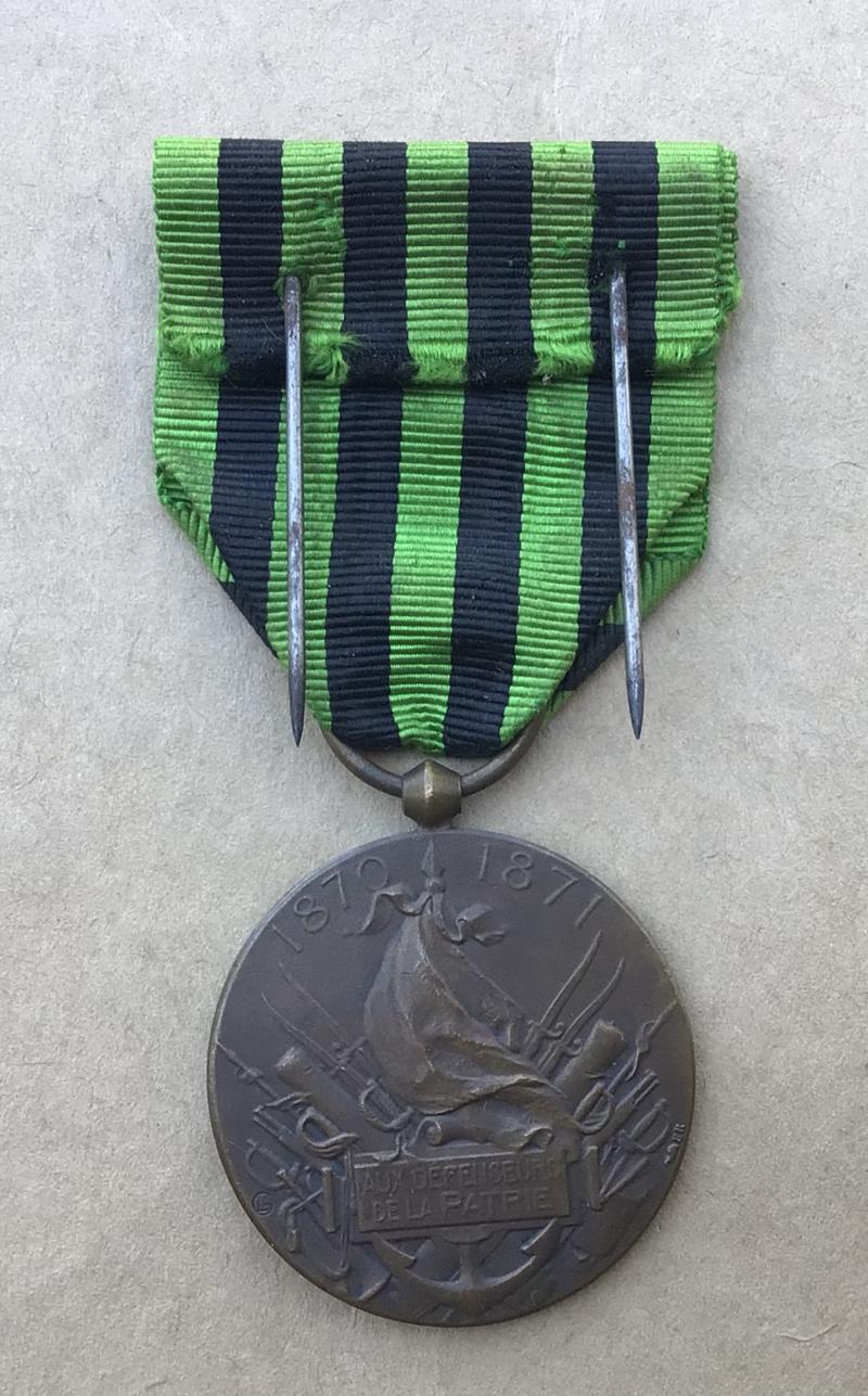 Instituted in November 1911 and awarded to those with war service in the Franco-Prussian War between July 1870 to February 1871, in France or Algeria. The medal was awarded to participants who held a combatant's certificate, of which it is believed 150,000 existed.