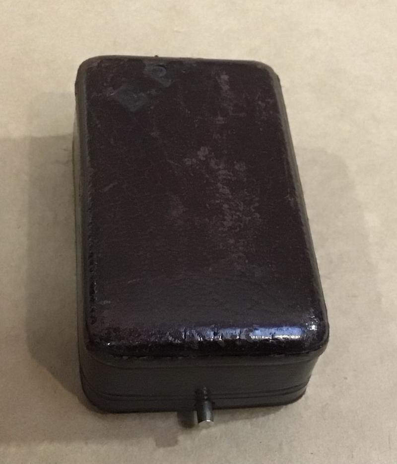 In its fitted leatherette case with Paris maker to the inside of the lid.