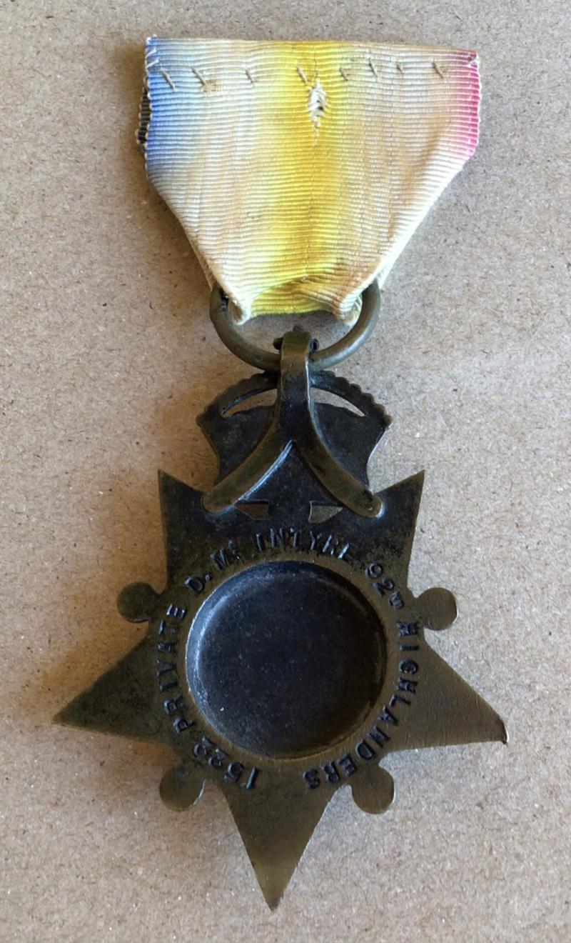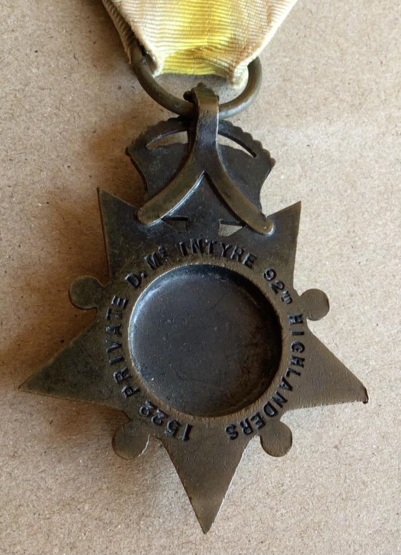 Original full size medal. Impressed on the reverse “ 1522 PRIVATE D Mc INTYRE 92nd HIGHLANDERS”.