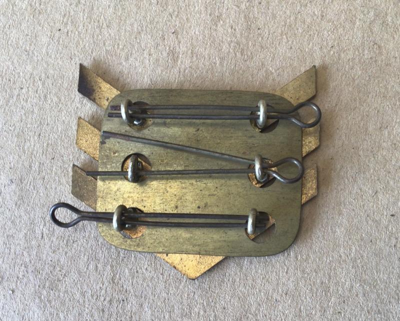 A lovely example of a three bar cheveron set on enamel and brass with full backing plate. The bottom red chevron indicating service in 1914. Each Cheverons Approx mm wide