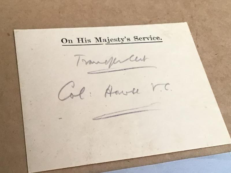 Together with its "OHMS" officially marked envelope with hand written ("Transfer Cert", Col Howse V.C".)