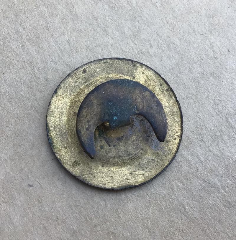Gilt brass and enamels. Button hole fitting to the reverse. Tone and small chip to the enamel. 30mm.