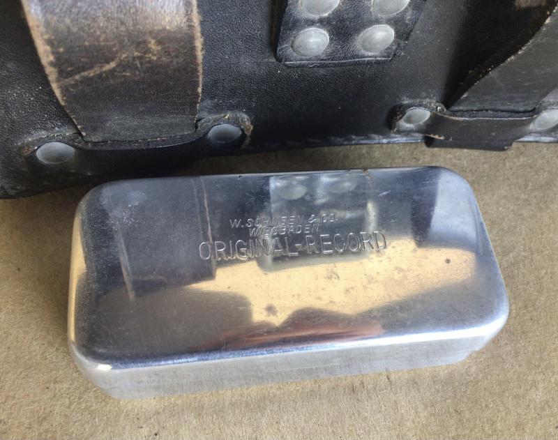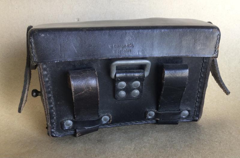 The black leather military issue medical belt pouch is in ear unissued condition . Complete with paper label on the inside with Luftschutz issue markings. (L.S)
