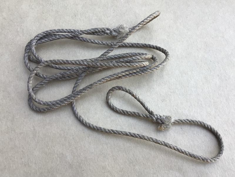 Hemp string lanyard for clasp knife, whistle or pistol.