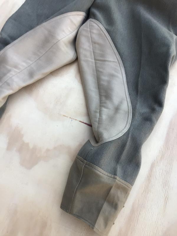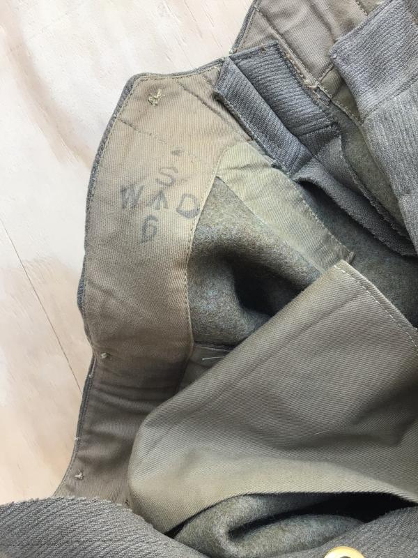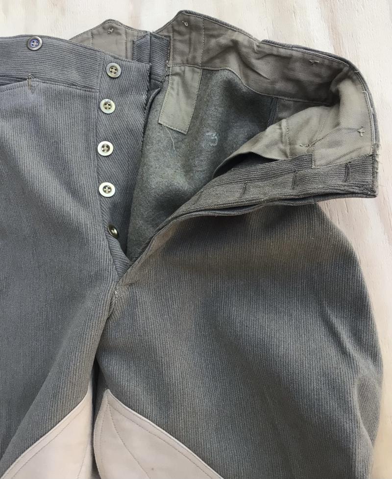 A near unissued pair of winter khaki wool corduroy jodhpurs. A light khaki chamois inners and leg cuffs. The inning marked with ordnance broad arrow stamp for the year 1938.