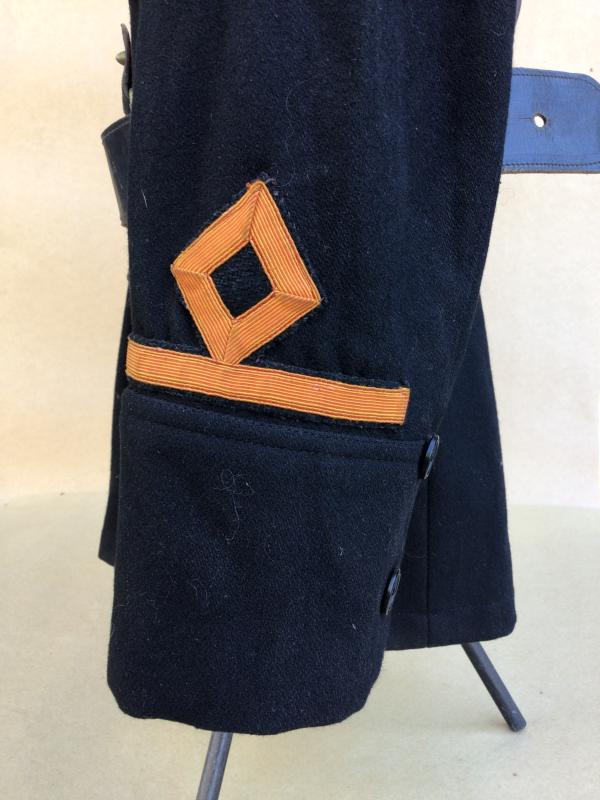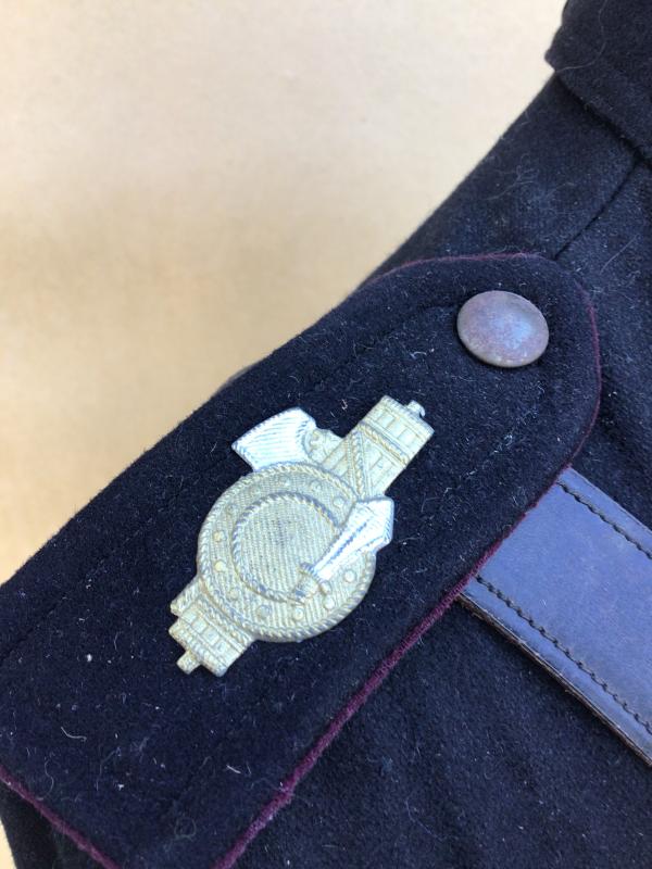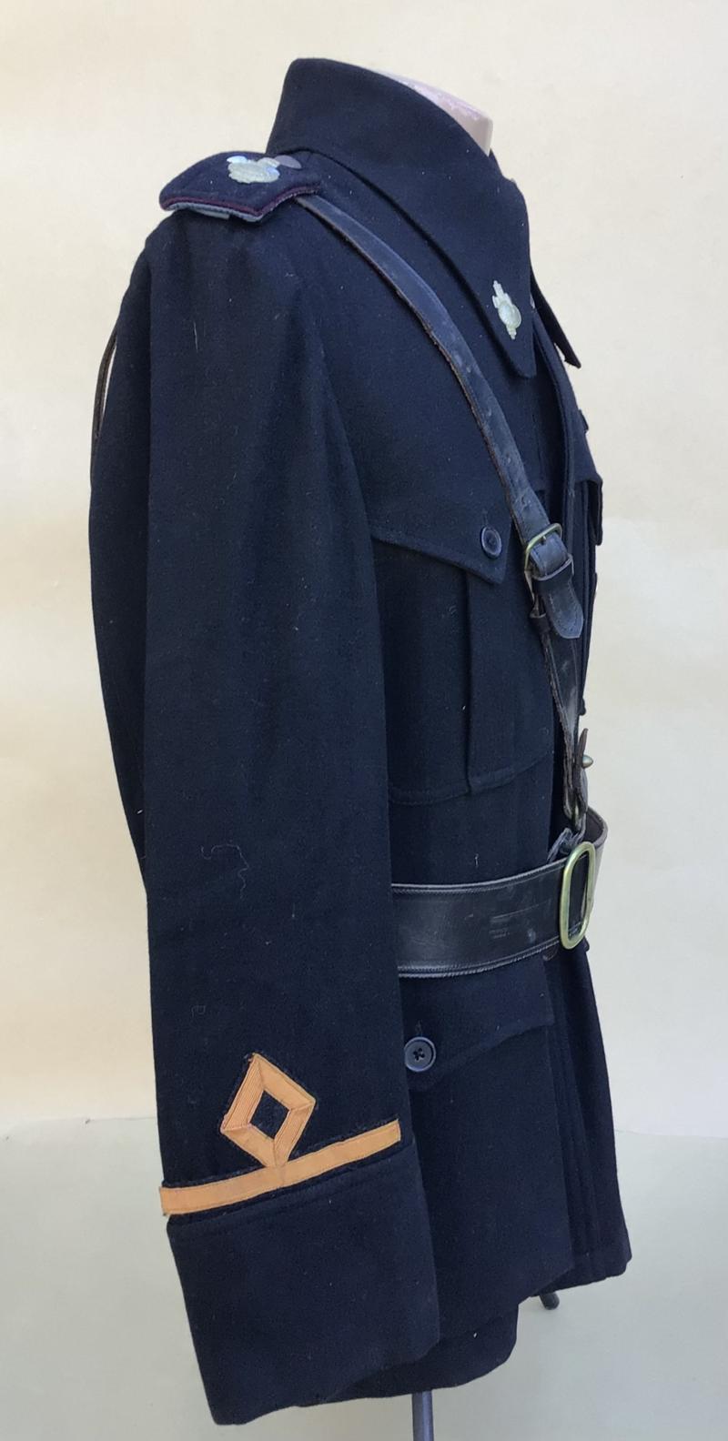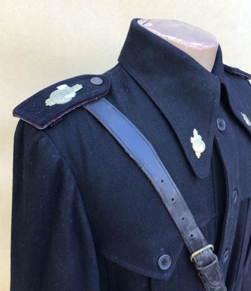 Black wool four pocket “Sahariana” pattern tuinc with plain black buttons and GLI metal collar badges. The detachable shoulder straps also with metal GLI badges. Embroidered sleeve badge and cuff rank for a Lieutenant. Two place ribbon bar and GLI membership breast badge. Together with a matching black leather belt and cross cross strap. No internal label. Not named. Overall in very good condition.