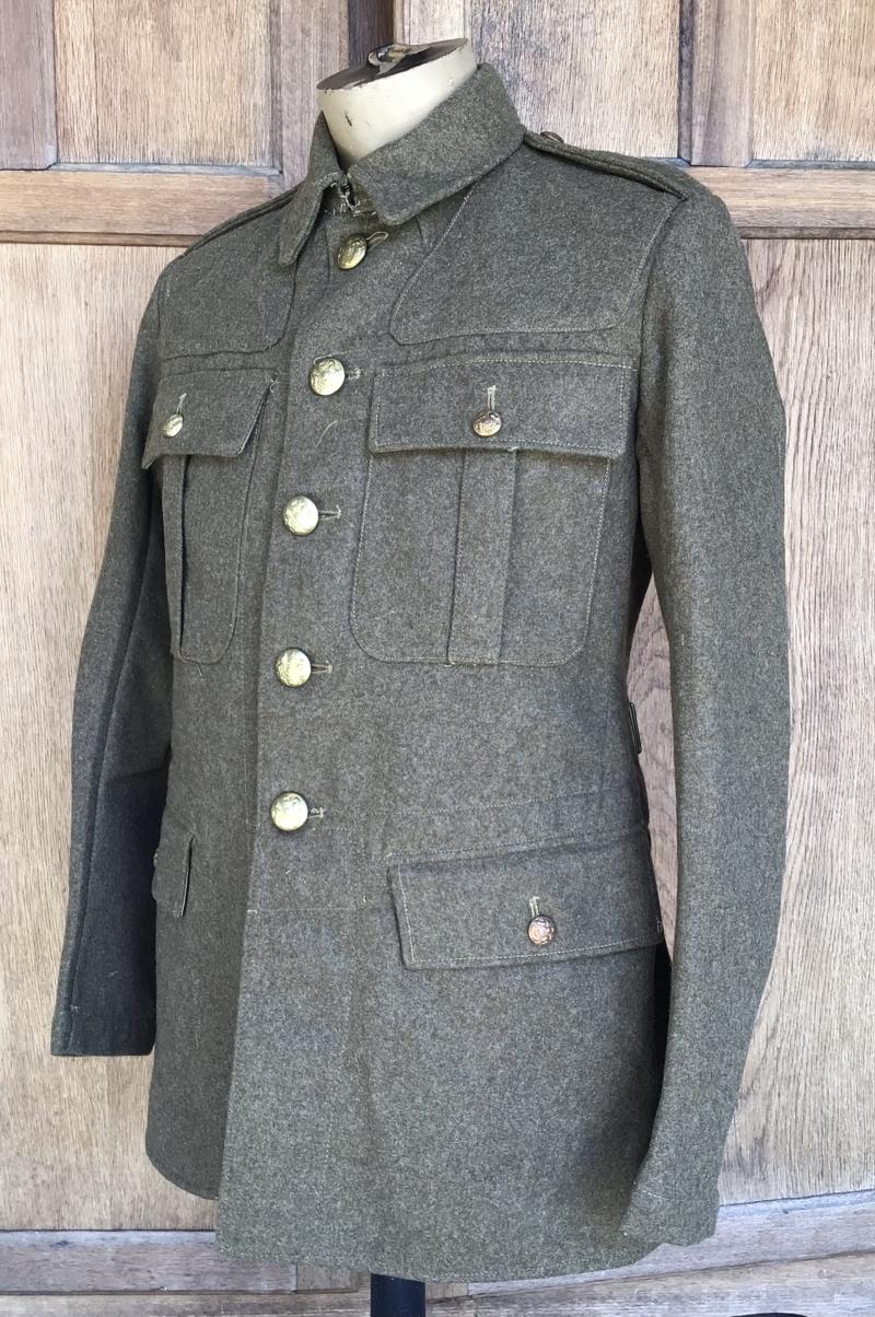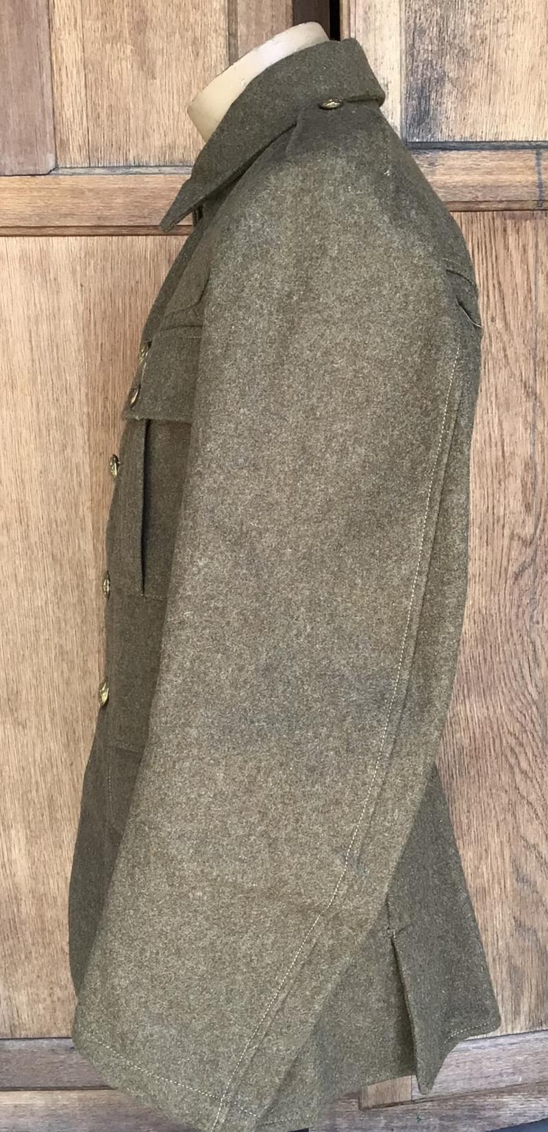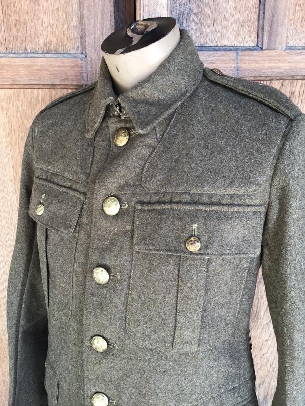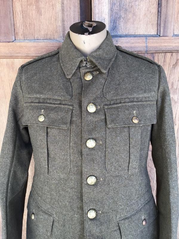 A very nice almost unissued example of the so called 1922 pattern of the 1902 service dress tunic. Khaki winter wool four pocket tunic with all brass kings crown general service buttons. War department issue marked. Perfect clean example. Whilst this is the 1922 pattern it’s perfect for a WW1 display as the extra inside lining added in 1922 cannot be seen.