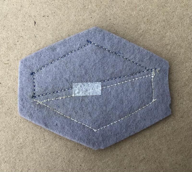 Possibly 151st Aust General Transport Company ASC. But this has a light blue not a dark blue shade half. More likely 5th Motor Regiment 1943 with grey AIF backing. Original full size patch.