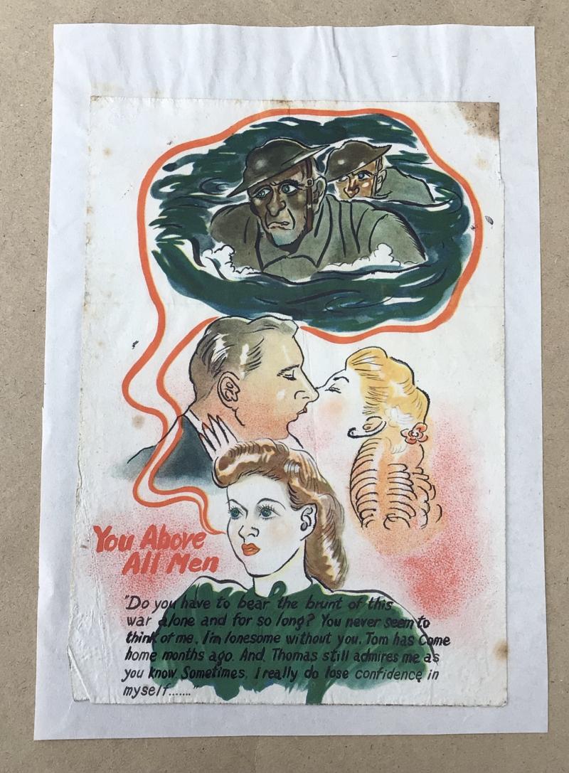 A rare example as dropped over Australian lines in the Pacific. Intended to lure Australian soldiers home to be with a loved one.