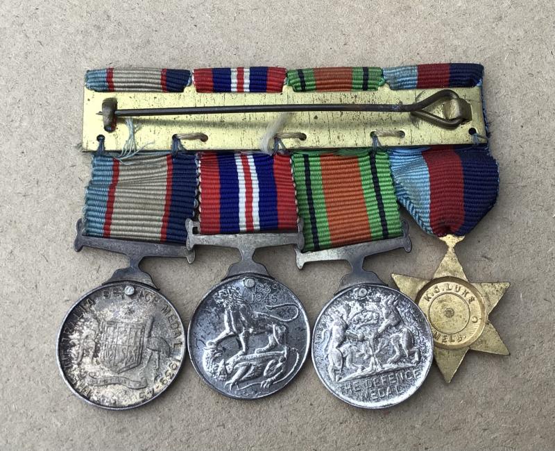 1939-45 Star, Defence Medal 1939-45, War Medal 1939-45, Australian Service Medal 1939-45. Mounted as worn. Original miniature medals by K G Luke