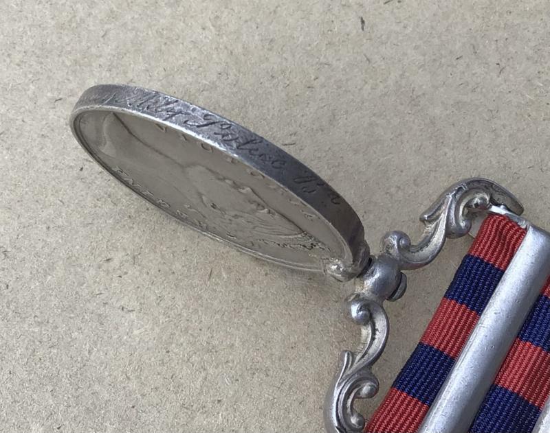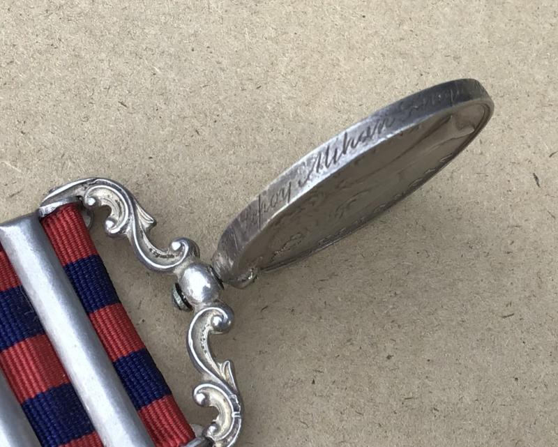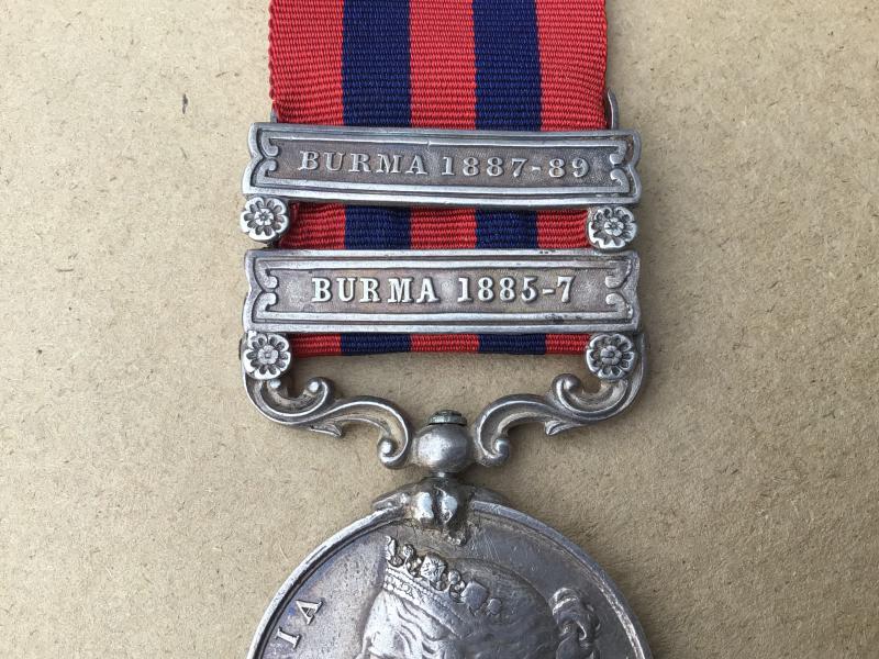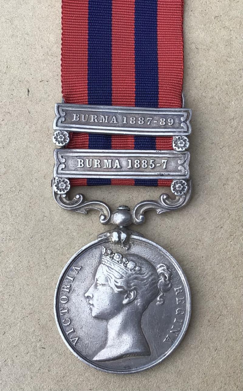 Two clasps (Burma 1885-7) (Burma 1887-89). Engraved in running script “527 Sepoy Singh Mandalay Mily Police Bn”. Original full size medal .