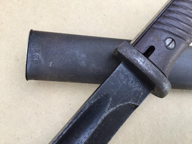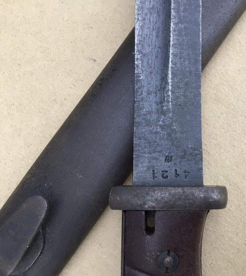 Comes with is all steel scabbard dated 1942. Non matching numbers to blade and scabbard.