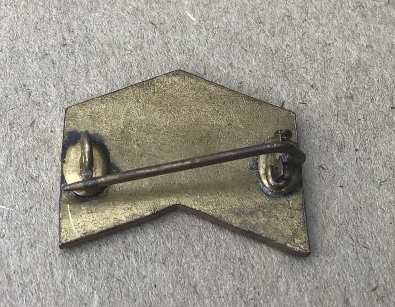 Five bar including red cheveron for servcie in 1914. Enameled badge approximately 27mm x 15mm.Brooch pin reverse.