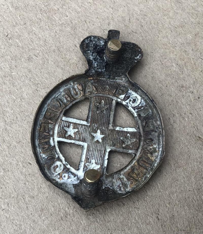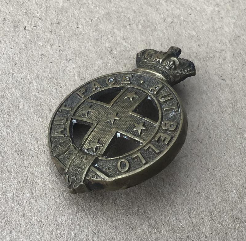 C.1880-1893. Brass. 43mm. 2x screw posts to the reverse.